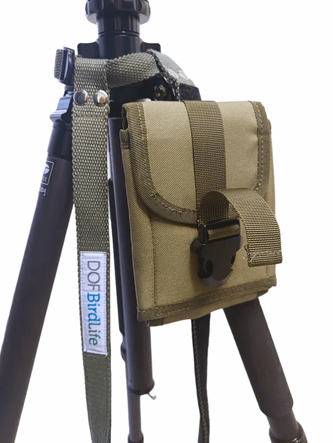 De nieuwe DOF statiefriem is een unieke draagriem, waarmee een statief als ware het een rugzak op de rug gedragen kan worden. De riem wordt onder de kop van het statief bevestigd en aan twee poten aan de onderzijde. Door de poten van het statief iets te spreiden, ligt het statief stabiel op de rug. De telescoop of camera met telezoomlens kan daarmee gewoon op het statief blijven zitten, terwijl je tijdens het wandelen de handen vrij hebt. Deze nieuwe uitvoering is voorzien van een zachte voering ter hoogte van de schouders en een riempje om de riem voor de borst vast te maken. Aan de linker voorzijde is ruimte voor het meegeleverde etui voor het opbergen van een smartphone of portemonnee. De DOF statiefriem wordt in Denemarken vervaardigd en exclusief door Ringfotofocus.nl aangeboden!