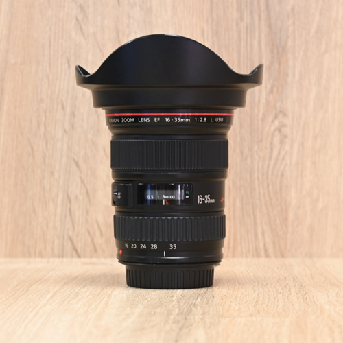 Keurige groothoek zoomlens voor Canon EOS DSLR camera’s. De Canon EF 16-35 mm F2.8 L USM is ideaal voor architectuur-, interieur- en landschapsfotografie. Perfect voor sfeervolle overzichtsfoto’s. Dit exemplaar is in keurige conditie. Het glaswerk is puntgaaf. De lens wordt geleverd met zonnekap en doppen.